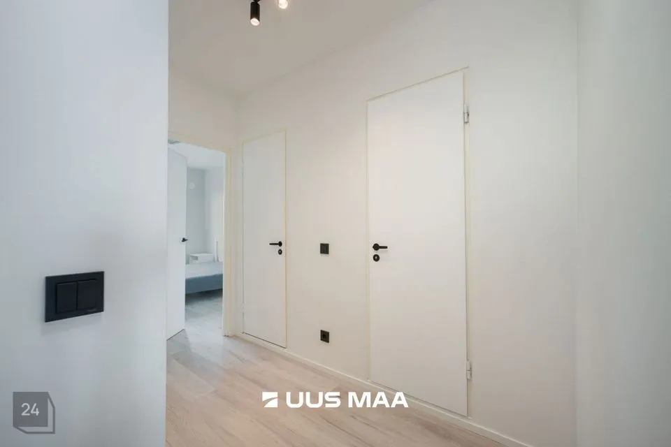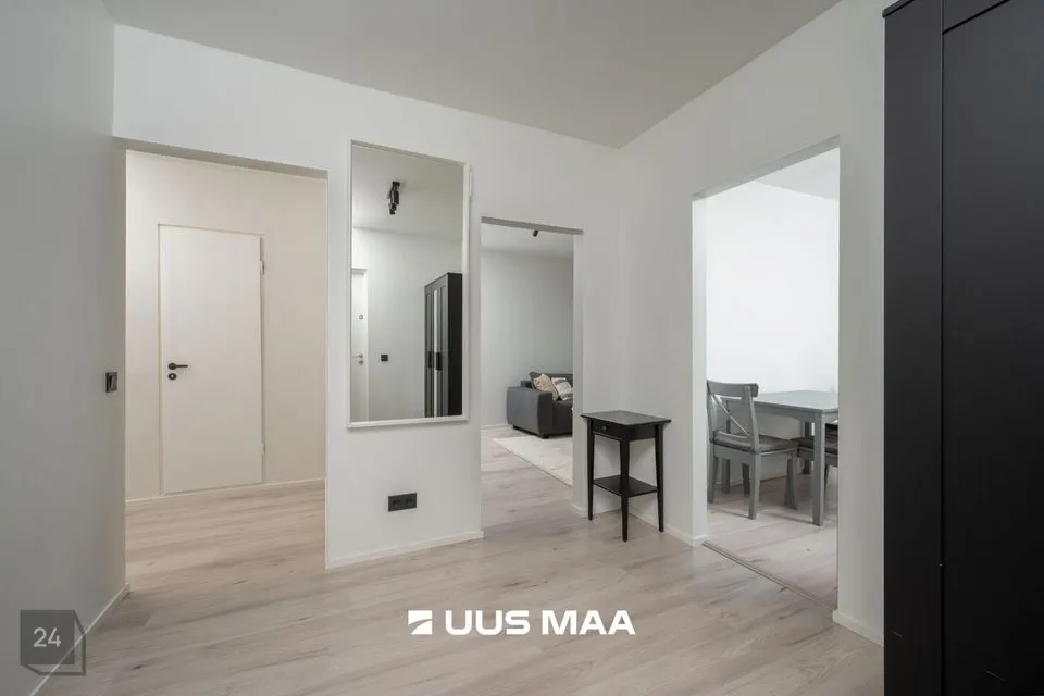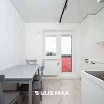 See ilus valgusküllane kodu asub maja 5. korrusel. Korterisse sisse astudes ootab ees ruumikas esik. Selle korteri suureks plussiks on kahtlemata eraldiseisev köök, kus perenaist ootab mahukas sisse-ehitatud köögimööbel koos kõige igapäevaseks toimetamiseks vajalikuga (pliit, ahi, kubu, nõudepesumasin ja külmkapp). Kirsiks tordil on see, et köögist on pääs ka mõnusale klaasitud rõdule.