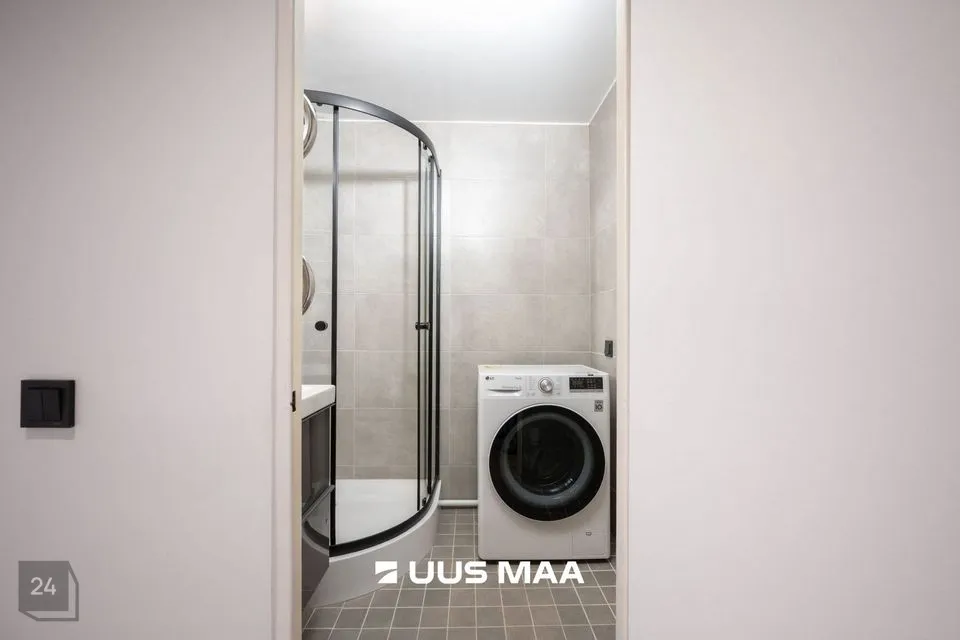 Elutuba jääb kohe köögi kõrvale ning magamistuba veidi eemale, sest nende vahele jääb omakorda dušiga vannituba ning eraldiseisev WC.