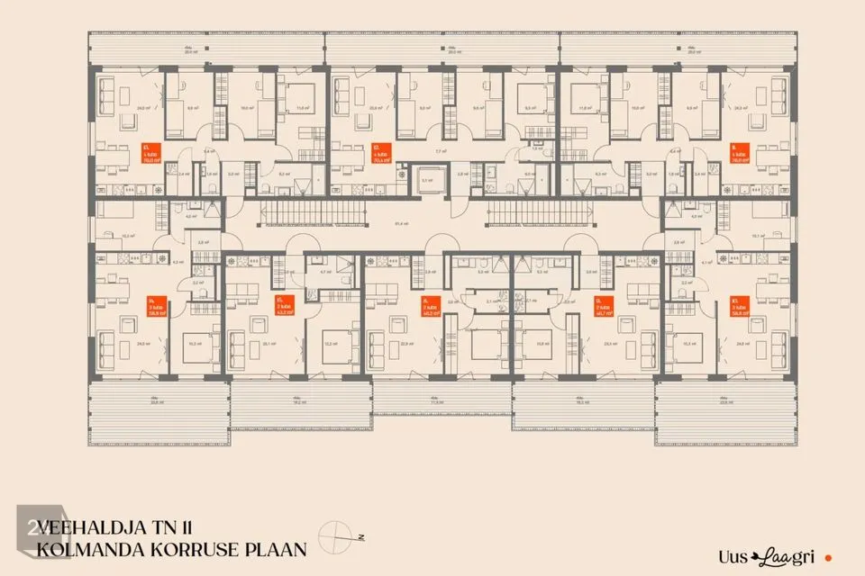 Uus-Laagri arendus pakub kvaliteetset ja kaasaegset elukeskkonda. Tänu läbimõeldud energialahendustele, nutikale planeeringule ja rohelisele ümbrusele on see ideaalne valik peredele ja tänapäevast elustiili hindavatele inimestele. Esimese etapi hooned on planeeritud kolmekorruselised, ühe maa-aluse tasapinnaga ning hõlmab kokku 23 + 23 korterit. Veehaldja 9 ja Veehaldja 11 ehituse algus on planeeritud 2025a suvel ning lõplikult valmib kogu kvartal 2027a.