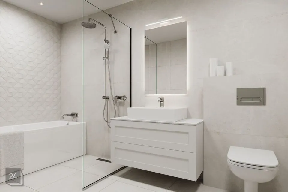 / Lisaks duširuumile koos vanni ja wc-ga on korteris eraldi külaliste tualett