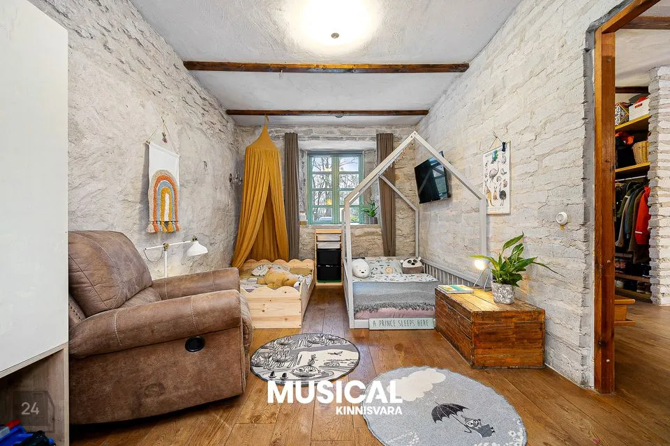Tegemist on väga eksklusiivse ja ainulaadse korteriga, mis asub 1. korrusel, kaunis 2007. aastal renoveeritud paekivist hoones. Korteris on neli tuba, sealhulgas suur ja avatud elutuba koos köögiga, mille pindala on muljetavaldavad 62,7 m². Kõrged laed annavad ruumidele õhulisuse ja avaruse, samas kui looduslikud ja kvaliteetsed viimistlusmaterjalid loovad sooja ja hubase atmosfääri.