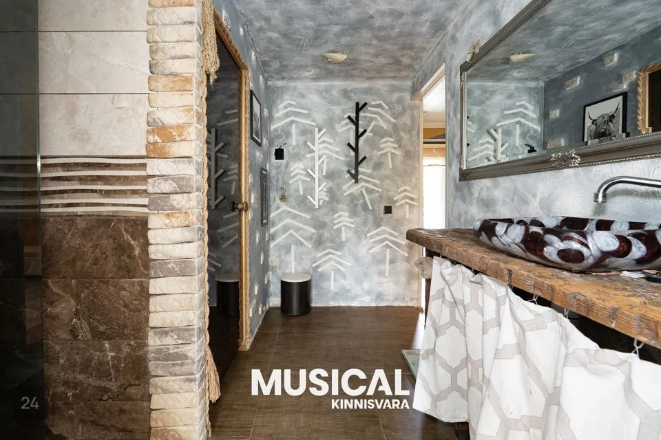Planeering on läbimõeldud ja mugav – avar esik loob kohe sisenedes ruumika ja kutsuva atmosfääri. Esikust vasakule jääb endine ühetoaline korter, kus on avatud elutuba koos köögiga. Elutoast pääseb edasi koridori, mis ühendab WC ja korterisisese panipaiga. Köögist ning elutoast on pääs rõdule. Esikust paremal paikneb praegune kontorinurk, otse on üks magamistuba ning vasakul asub saun, mille taga on teine magamistuba.