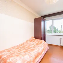 Квартира состоит из: просторного коридора, кухни, гостиной, спальни, туалета/ванной комнаты. Выход на балкон из кухни. Из окон открывается вид как на переднюю часть дома, так и на задний двор с детской площадкой и огородом. Окна заменены. Новая входная дверь.