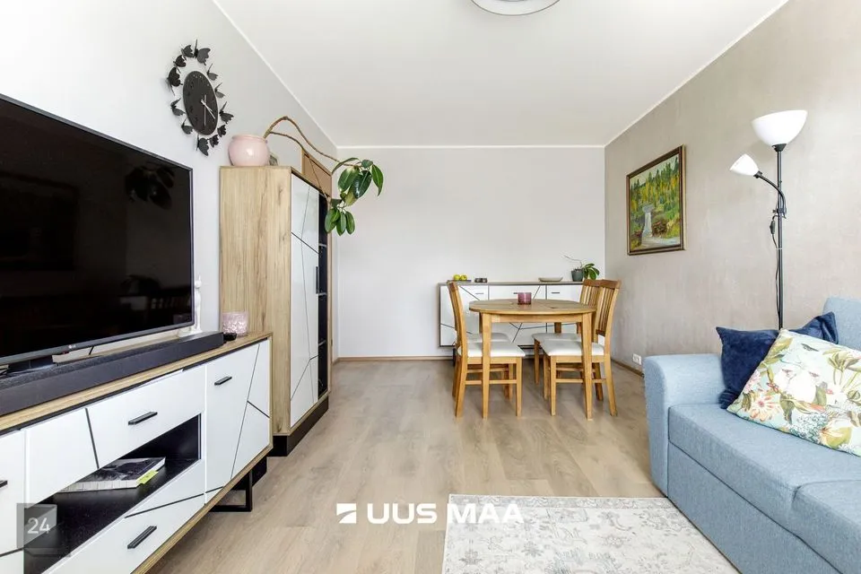 2-toaline renoveeritud korter asub kolmandal korrusel, akendega hommiku- ja lõunapäikese poole ning selles on esik, magamistuba, elutuba, millest pääseb suurele klaasitud rõdule, eraldi köök ja WC/duširuum.