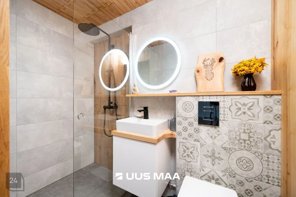 Alumine ja ülemine korrus on eraldatud ning eraldi sissepääsudega, mis võimaldab privaatset kodukontorit/salongi või muud sellist.