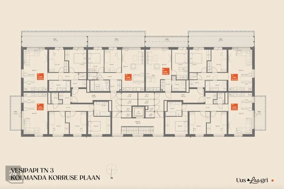 Uus-Laagri arendus pakub kvaliteetset ja kaasaegset elukeskkonda. Tänu läbimõeldud energialahendustele, nutikale planeeringule ja rohelisele ümbrusele on see ideaalne valik peredele ja tänapäevast elustiili hindavatele inimestele. Esimese etapi hooned on planeeritud kolmekorruselised, ühe maa-aluse tasapinnaga ning hõlmab kokku 23 + 23 korterit. Veehaldja 9 ja Veehaldja 11 hooned valmivad sügis 2026. Teise etapi hooned, Veehaldja 12 ja Vesipapi 3, on planeeritud neljakorruselised, mis hõlmavad 22 + 22 korterit. 2.etapi ehituse algus on planeeritud kevad 2026 ning valmivad suvi 2027.