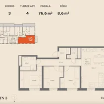 / Lisaks duširuumile koos vanni ja wc-ga on korteris eraldi külaliste tualett