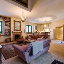 1. tasand: esik, WC/dušš, avatud köögiga elutuba, mille keskmes on kamin
