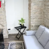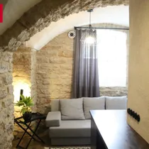 Kõrged paekivist võlvlaed ja rahulikud toonid interjööris õdusa õhustiku.