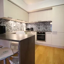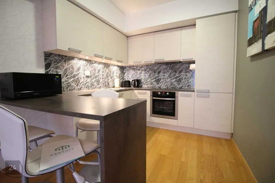 Planeeringult on korter avatud köögiga ning sisustatud integreeritud tehnikaga kus on olemas kõik vajalik (nõudepesumasin, väljatõmme, ahi, pliit, külmik)
