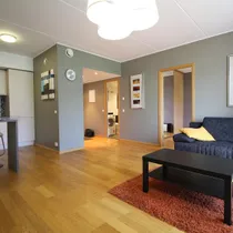 Kodu põrandaid katab täispuidust hele parkett ning sisustuse osas on kasutatud pastelseid toone, mis tekitavad mõnusa koduse tunde. Korteril on eraldi olemas ka panipaik, mis kuulub hinna sisse.