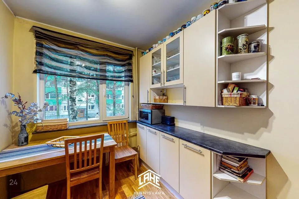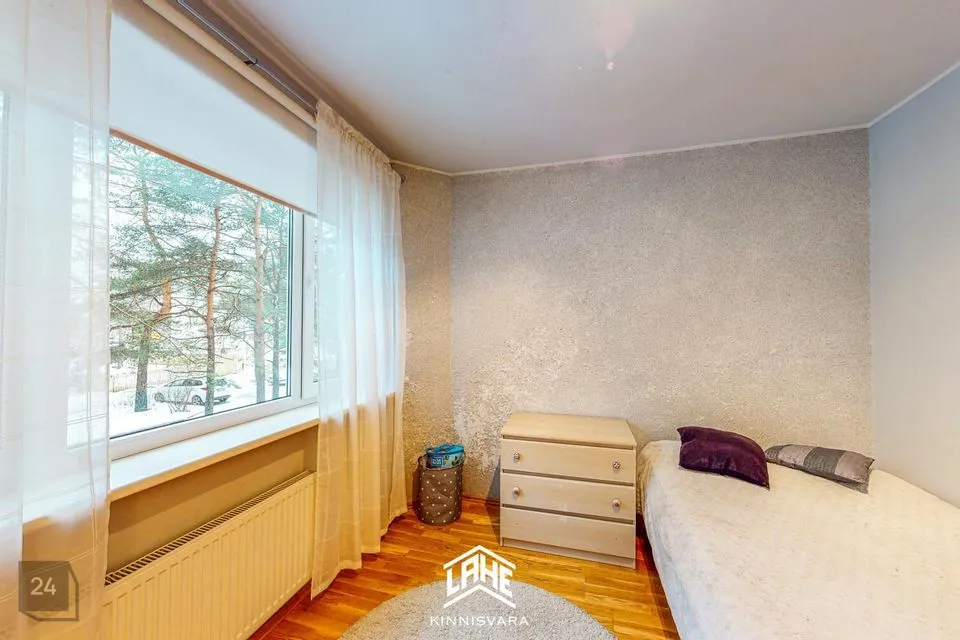 Nelja-toaline teise korruse korter on 60,8 m2 suur ning koosneb esikust, vannitoast, eraldi köögist, rõduga elutoast ja kolmest magamistoast. Viimane renoveerimine on tehtud 8 aastat tagasi, mille käigus vahetati kogu korteri elektrisüsteem ja torustik. Põrandaid katab parkett, seinad on värvitud või tapeeditud ning vannituba on plaaditud.