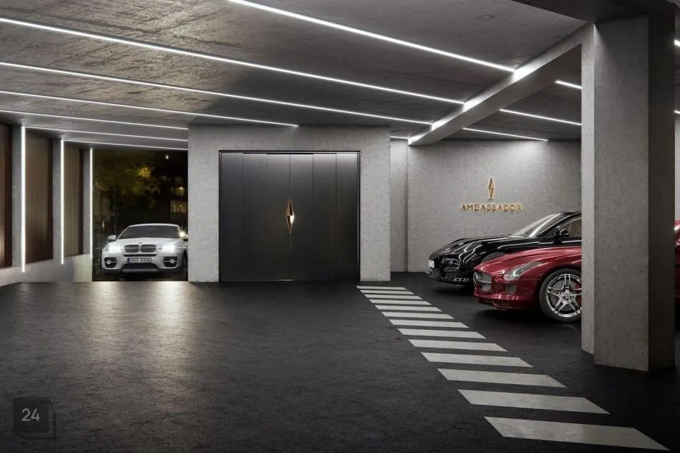 Ambassadori elanikke ootab koju tulles alati väärikas vastuvõtt. Luksusliku disainiga möbleeritud fuajees on elanikele abiks portjee, tänu kellele on majas alati tagatud täiendav privaatsus. Maja sisehoovi poolsest küljest pääseb mugavasse majasisesse parklasse. Parkimiskohad asuvad hoone esimesel kolmel korrusel, mille vahel liigutab sõidukeid Eestis ainulaadne autodele mõeldud lift. Parkimiskorrustelt viib eridisainiga lift mugavalt otse elukorrustele.