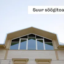 Majade vahel on roheline aiaala, kus asuvad grillimisnurk, pergola, pinksilaud ning erinevad atraktsioonid lastele.