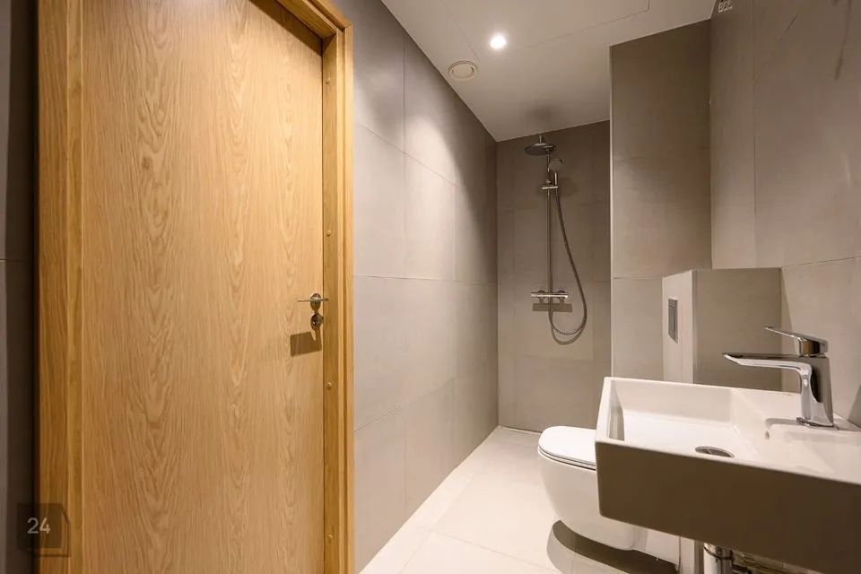 Eluruumide seinad ja laed on värvitud, vannitubade seinad kaetud keraamiliste plaatidega ja/või värvitud vastavalt arhitektuursele projektile. Eluruumide ja esikute põrandate viimistluseks on kasutatud spoonparketti; tualettruumides, vannitubades ja saunades on põrandad kaetud keraamiliste plaatidega.