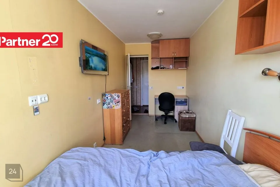 Ruumide asetus: esik, eraldi vannituba ja wc (olemas põrandaküte), avar köök (olemas põrandaküte), kõik toad eraldi. Läbi maja asetusega korter.