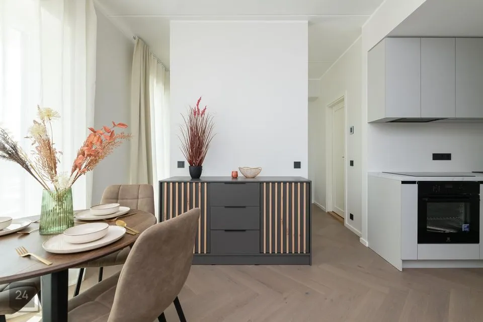 Korteri hinna sees on kvaliteetne köögimööbel tehnikaga, garderoobikapp ning kogu korteri sisustus.