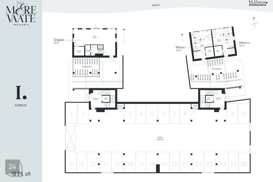 - Kõigi korterite juurde kuulub 0-korrusel asuv panipaik ja igale korterile on arvestatud 1 või 2 autokohta maja 1. korrusel või hoovialal. - Merevaatega äripinnad on hoonete 1-korrusel, suurused 30-63 m2.