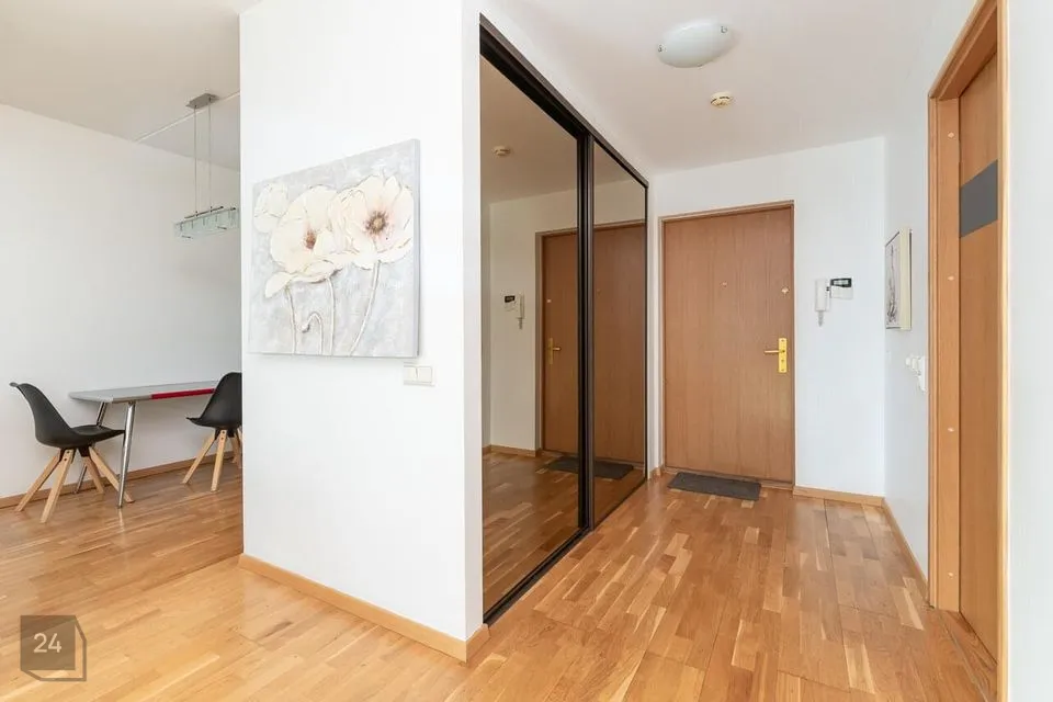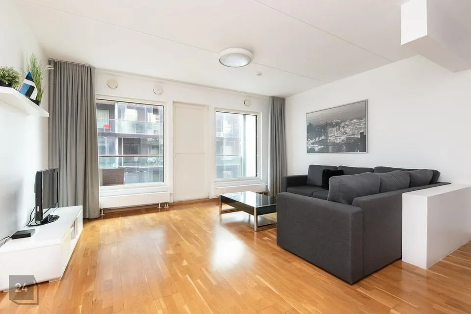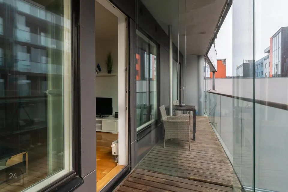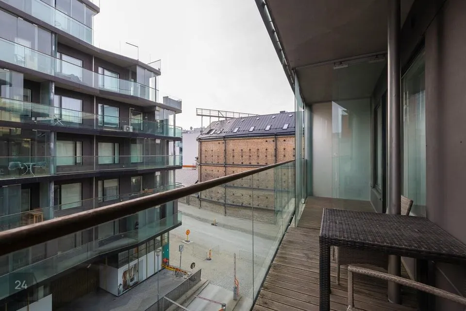 Elutoast pääs avarale rõdule, mille vaade jääb sisehoovi. Rõdu on klaasitud, mida saab vajadusel eemale lükata, olemas mürakaitsega rõduuks. Selles kodus on avarad aknad nii elutoas kui ka magamistoas, tänu millele on korteris palju valgust. Põrandaid katab naturaalne parkett.
