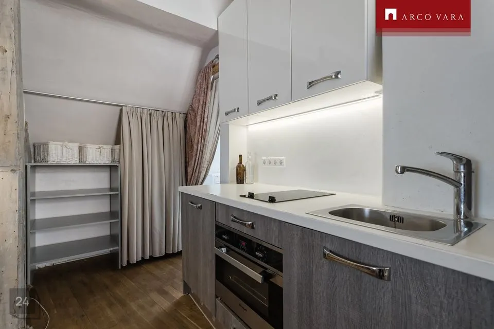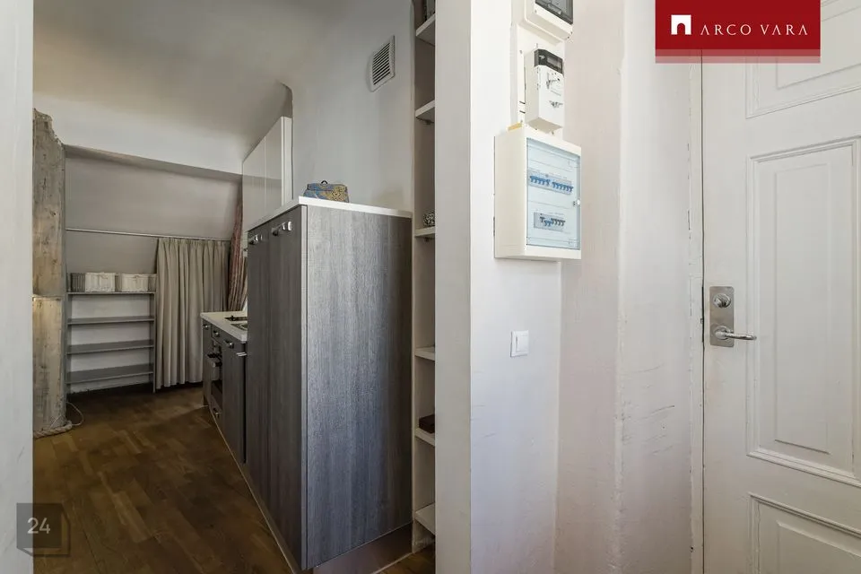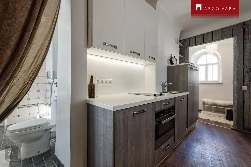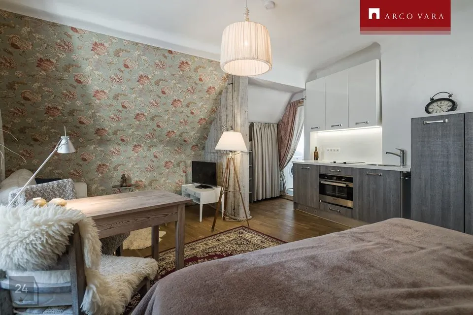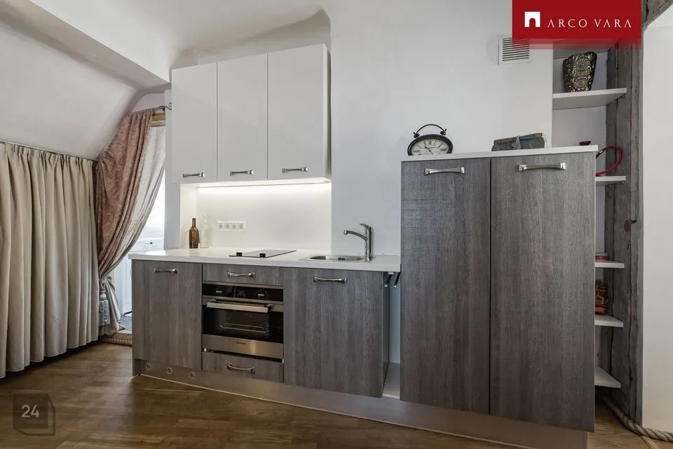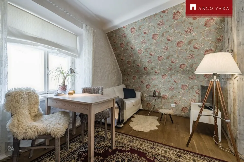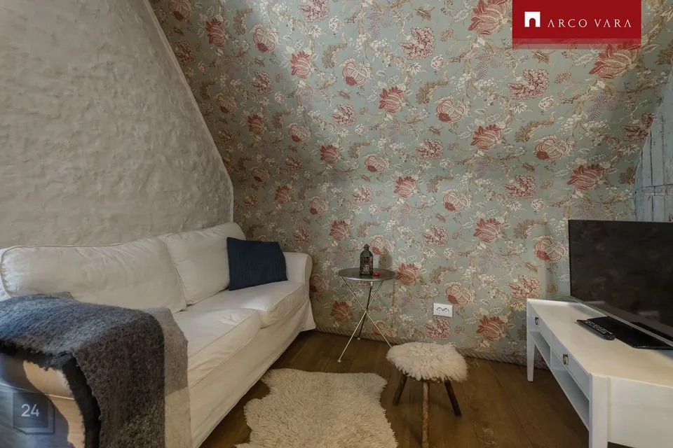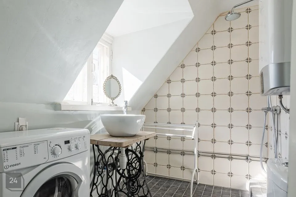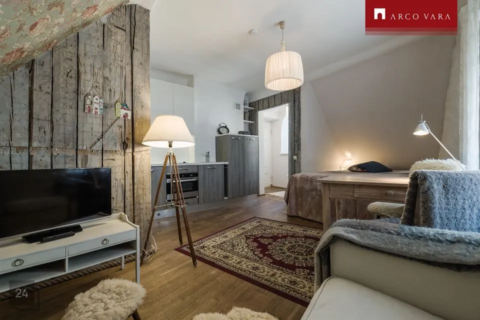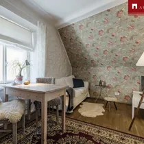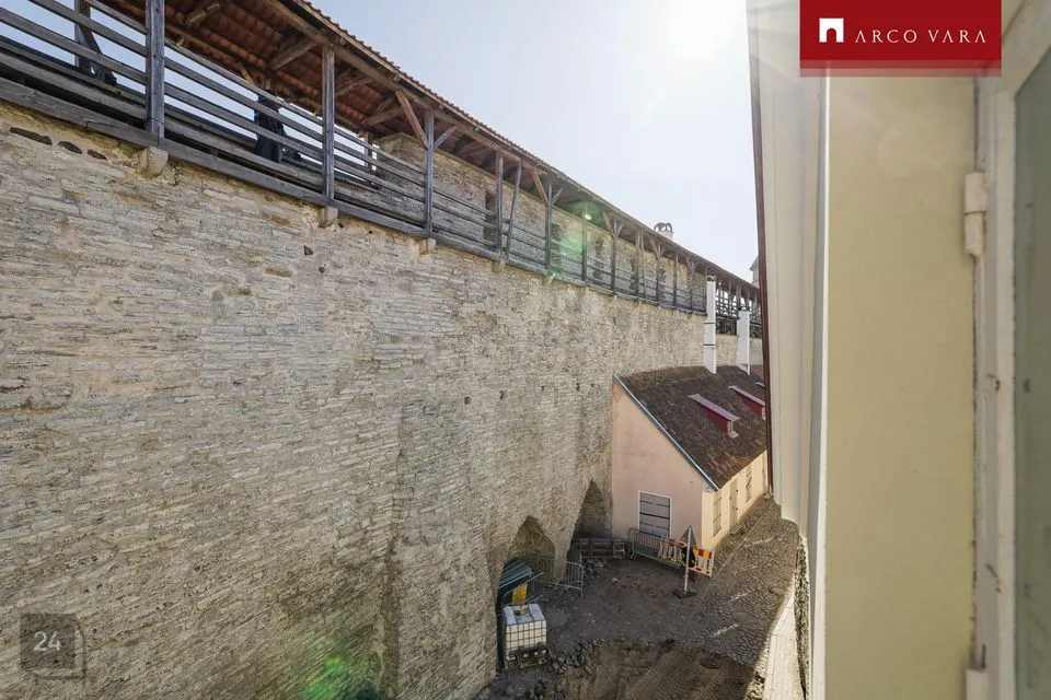 Vanalinna hõngu lisab korteri interjööris algupärane palksein, samuti kaldlaed, mille all on hea asukoht kardinaga eraldataval panipaigal.