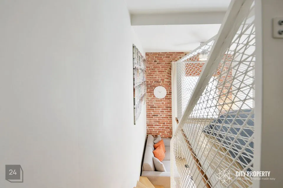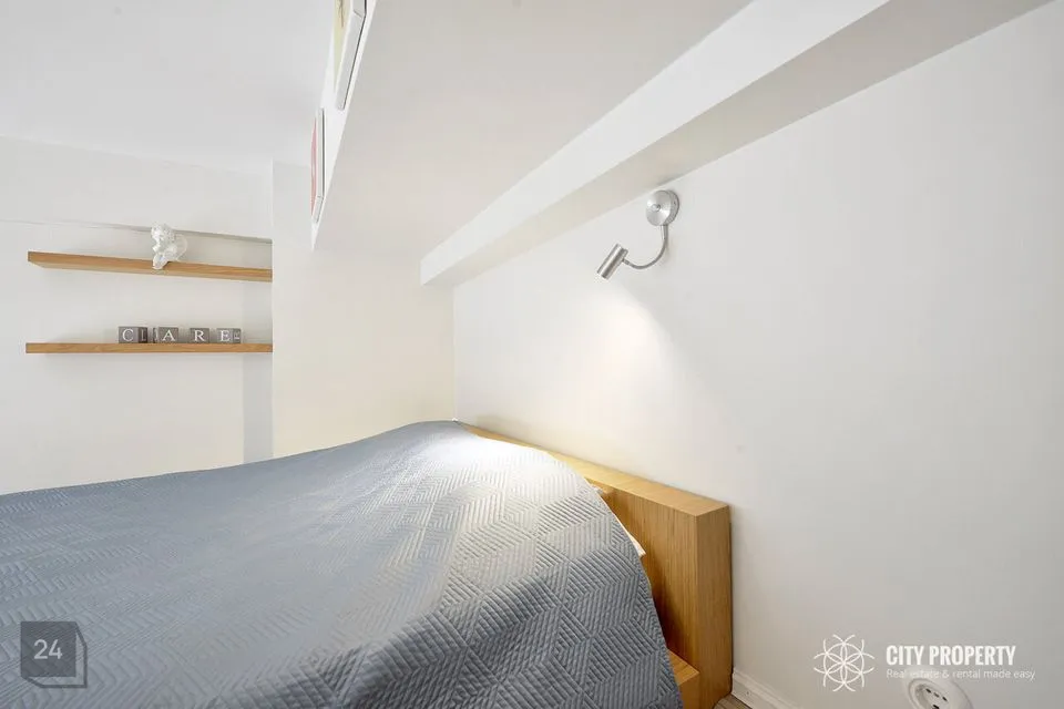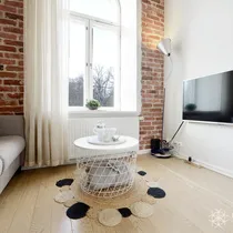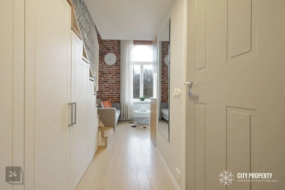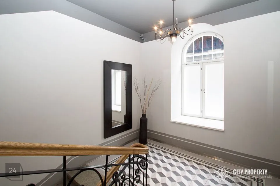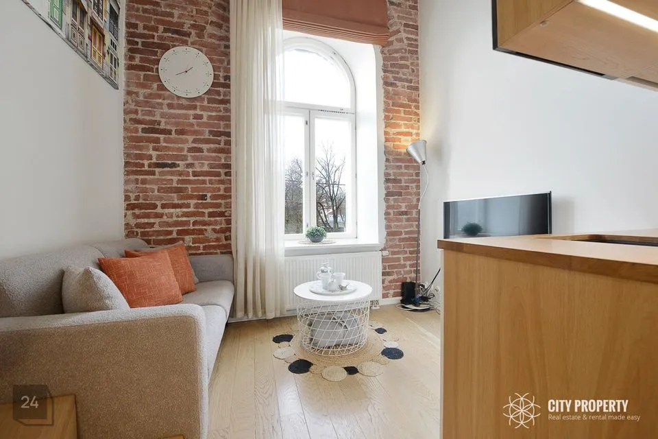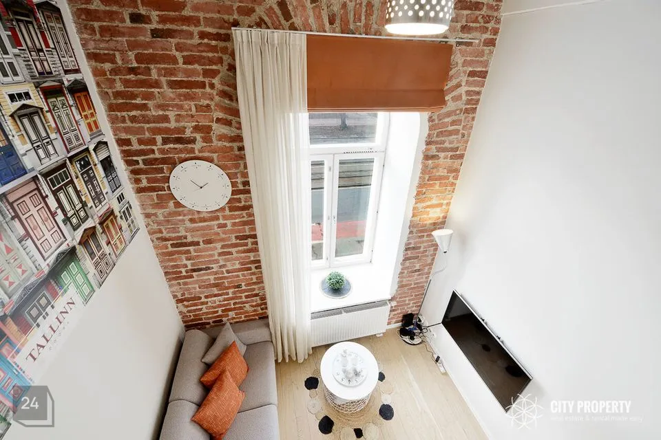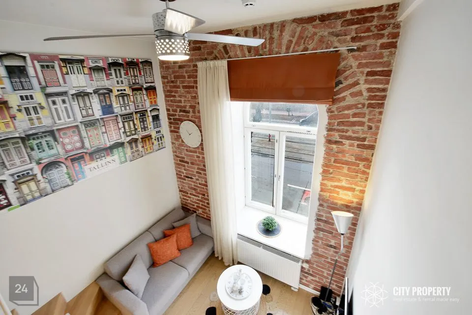 Viimse detailini läbimõeldud ja sisustatud loft-apartment asub luksuslikult renoveeritud ajaloolise kivihoone teisel korrusel. Kõrgest kaaraknast paistavad nii vanalinna tornid kui ka põlispuude rohelised ladvad üle tee asuvas Kanuti aia pargis. Korter sobib ideaalselt majutuse äriga tegelevale ettevõttele või tegusale linnanoorele, kelle jaoks loeb asukoht absoluutses tsentrumis ning ligi neljameetrise (3,7m) laega ruum, mida kaunistab algupärastest klinkertellistest välissein.