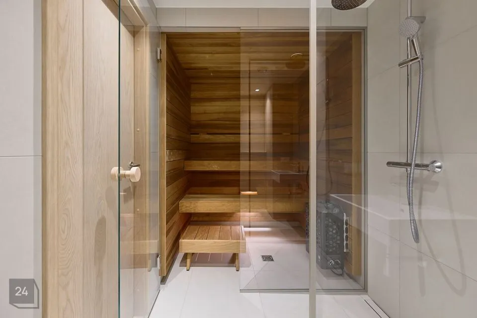 Eluruumide seinad ja laed on värvitud, vannitubade seinad kaetud keraamiliste plaatidega ja/või värvitud vastavalt arhitektuursele projektile. Eluruumide ja esikute põrandate viimistluseks on kasutatud spoonparketti; tualettruumides, vannitubades ja saunades on põrandad kaetud keraamiliste plaatidega.