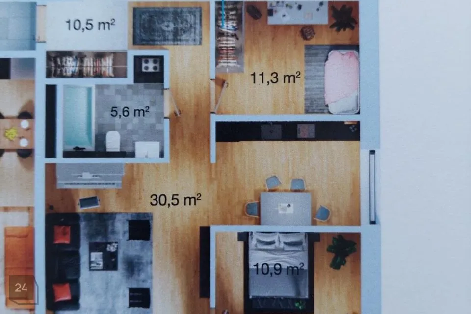 Kõik 3 tuba on üksteisest eraldatud ning suurest elutoast on väljapääs avarale 15,8 m2 rõdule! Korteri üldpind on 68,8 m2+15,8 m2 rõdu.
