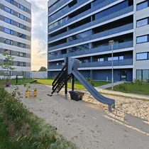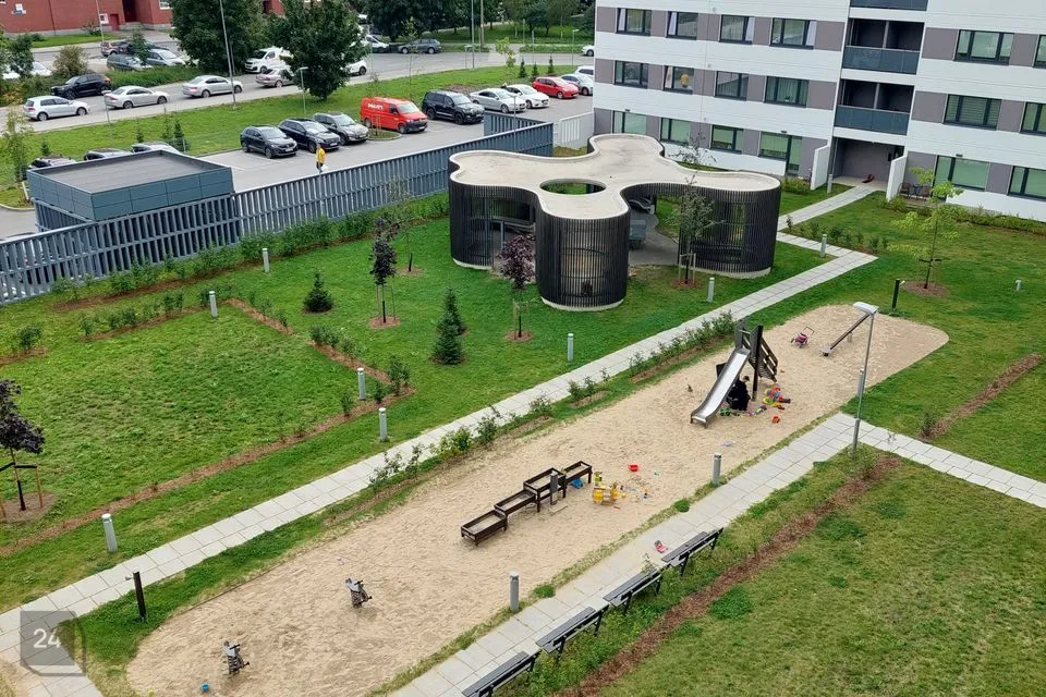 Maja hoov on ilusasti sisustatud, hoovialad pakuvad ajaviidet nii lastele kui täiskasvanutele - olemas suur privaatne mänguväljak. Parklasse pääsevad avatava väravate kaudu ainult maja elanikud , mis on seadistatud mobiilist.
