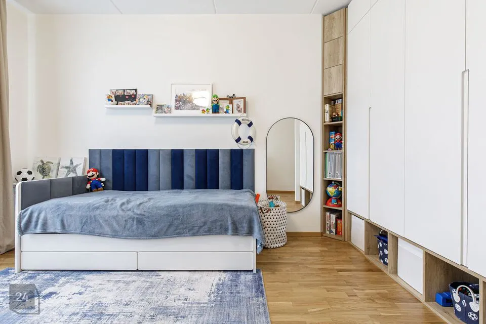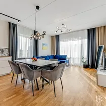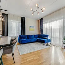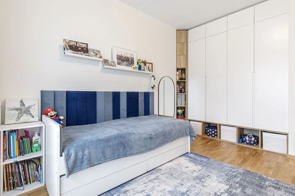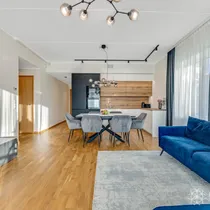 Kogu korter on ühtses stiilis sisustatud ning iga detail on hoolikalt läbi mõeldud, tõelisele kodule omaselt on korteris palju nutikat kapiruumi. Kõrgete lagedega kodu on avar ja valgusküllane.