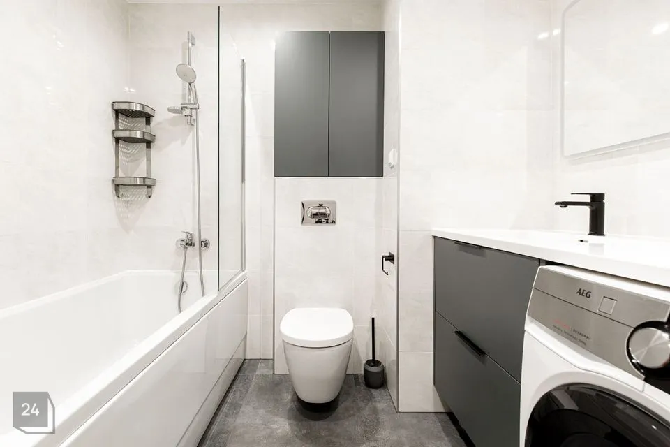 Köök on kvaliteetne ning funktsionaalselt sisustatud, olemas on külmkapp, induktsioonpliit, ahi, nõudepesumasin ning mikrolaineahi. Ka stiilses vannitoas on piisavalt asjade hoiustamise ruumi, olemas on ka pesumasin koos kuivatiga.