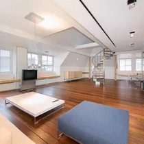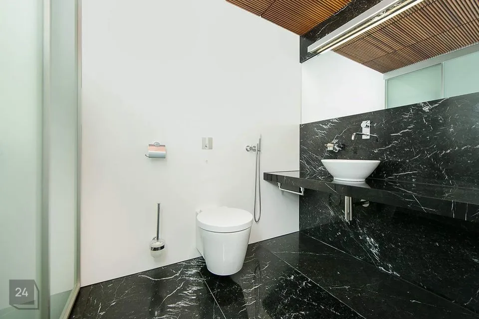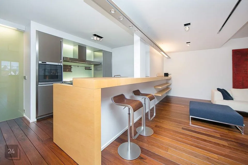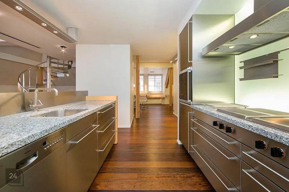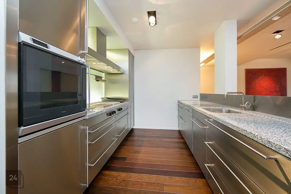 Professionaalne roostevabast terasest köögimööbel (Bulthaup) koos tehnikaga (Gaggenau). Avatud pind söögitoaks ning kontorinurgaks. Lisaks on avar tualettruum koos majapidamisruumiga.