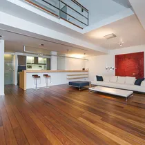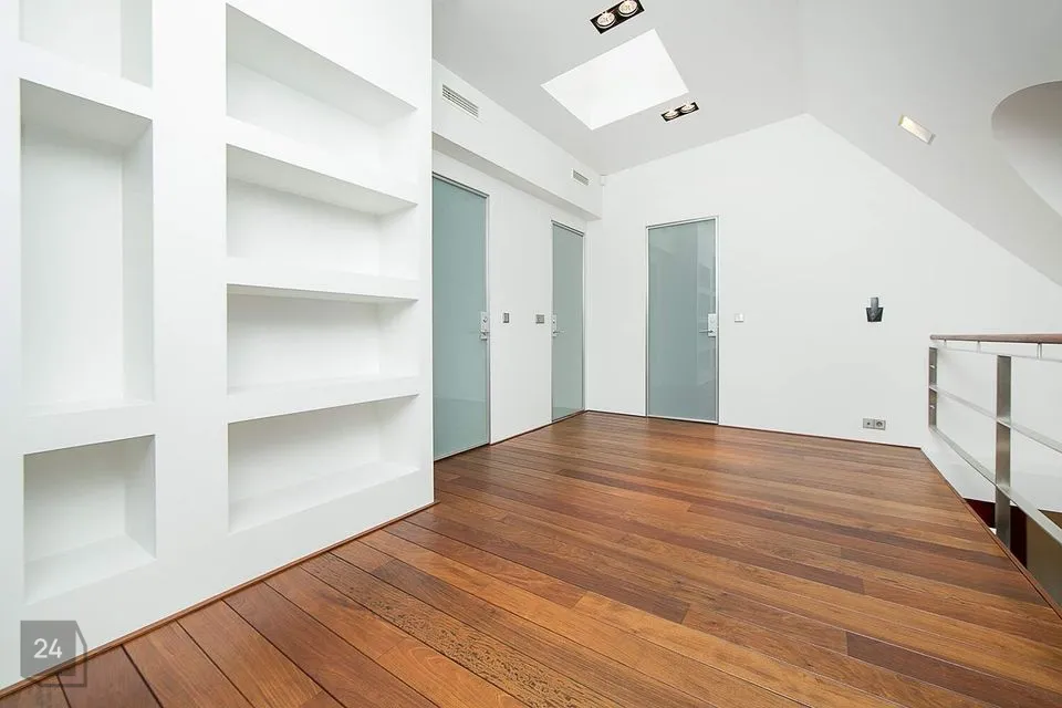Põrandaid katab väärtuslikust puidust ipe-laudpõrand. Valgustid on valitud Kreon ja DeltaLight valgustite valikust.