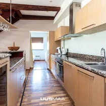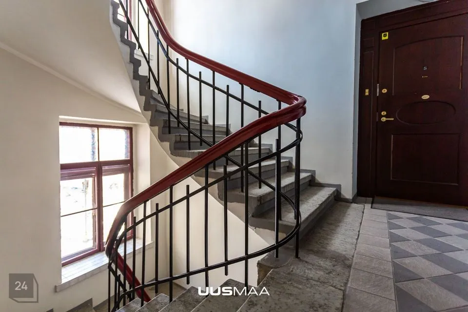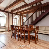 Eluruum paikneb osaliselt läbi kahe korruse ning korteri akendest avanevad kaunid vaated vanalinna kirikutornidele ja naabruskonnale.