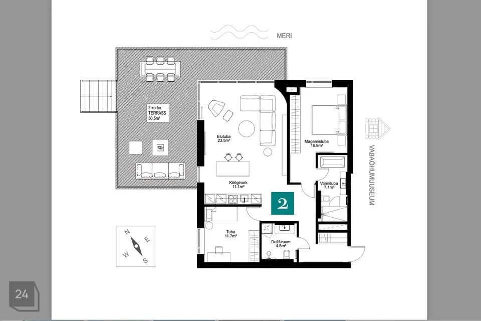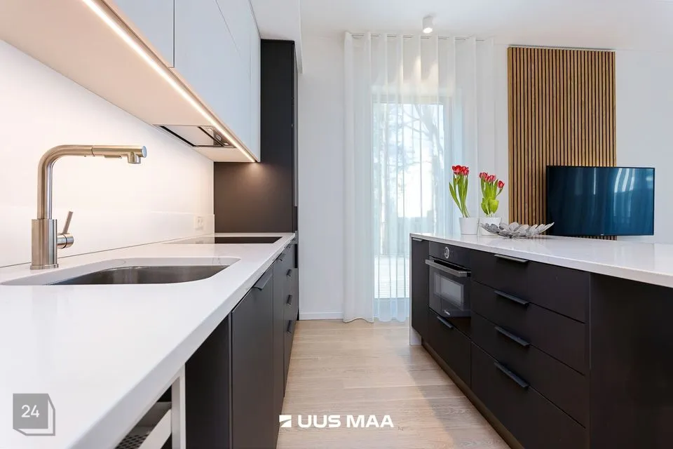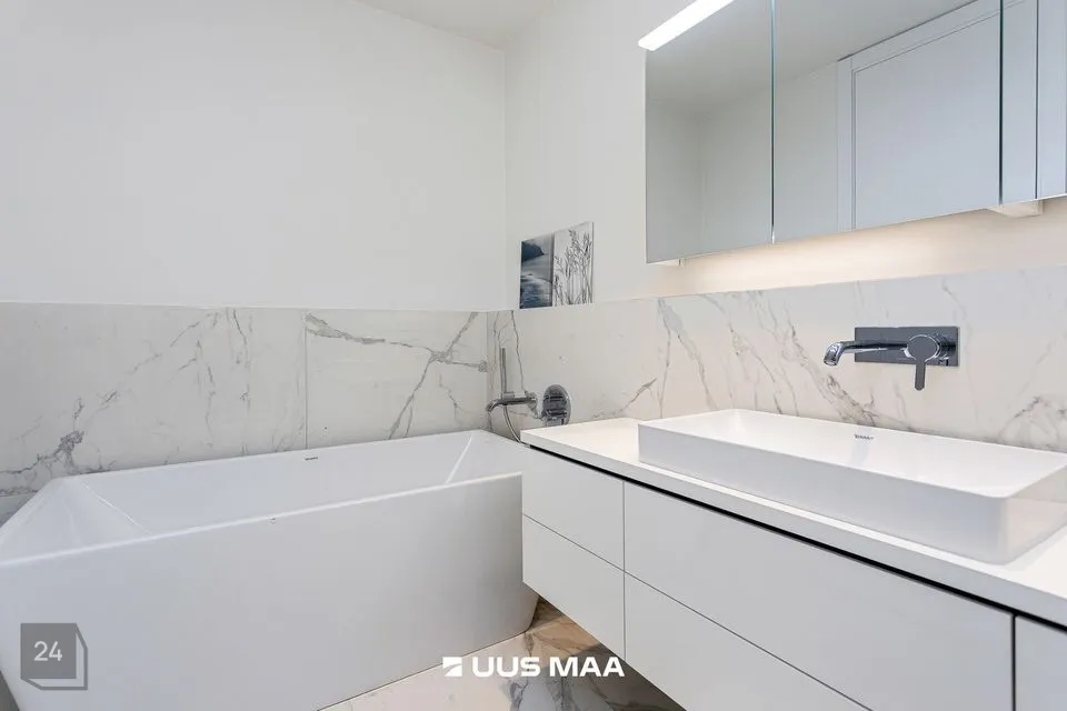 Korteri müügihinnale lisandub ekstra lai parkimiskoht soojas maa-aluses garaažis (25 000 eurot) ja panipaik (7 500 eurot).
