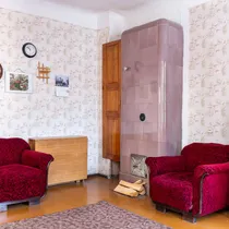 В квартире печное отопление. Газовая плита и дровяная плита.
