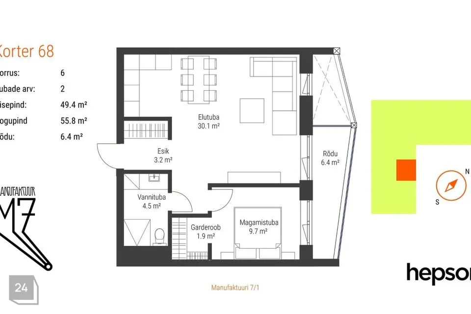 - Pea igal korteril on rõdu või terrass. Kortereid kompaktsetest ühetoalistest ruumikate viiesteni.
