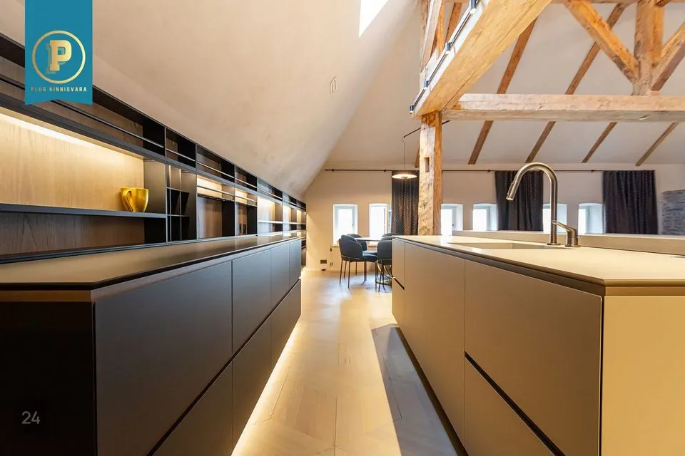 Pakutav kodu laiub ajaloolise hoone kolmandal ja neljandal korrusel. Kõrgeim ja avaraim osa korterist on lausa ca 7 m kõrgune ja pakutav kodu on osaliselt 2-korruseline. Ruumikas ja valgusküllane, avatud planeeringuga elutuba ühendub elegantse köögialaga, luues ideaalse keskkonna meelelahutuseks ja igapäevaeluks. Privaatsed magamistoad, kus mõlemas on oma olmeblokk, millest peamises on lausa väiksem spaaala. Pakutava kodu iga sentimeeter on läbimõeldud ja viimistletud ülima täpsusega, et tagada kodusolijate maksimaalne mugavus. Pakutav kodu müüakse koos kogu piltidel näha oleva mööbli-, tehnika- ja sisustuselementidega.