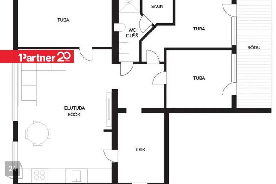 Korteris on 3 magamistuba, mis asetsevad kõik eraldi. Lisaks magamistubadele avar ning valgusküllane köök-elutuba, ruumikas esik, dušikabiini ja WC-ga vannituba ning oma isiklik saun.