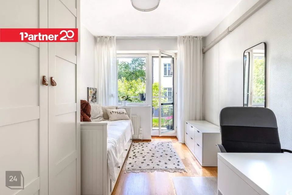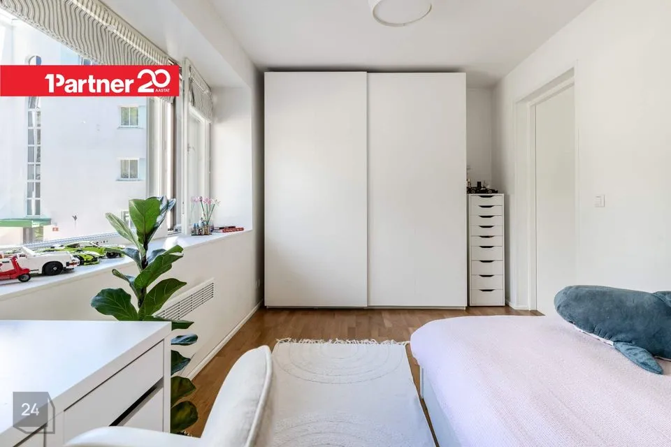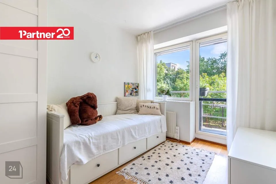 Müügipakkumises on kena, hästi hoitud skandinaaviastiilis kodu, mis asub sisuliselt linna südames, Tallinna Autobussijaama ja Keskturu vahelisel alal. Kõrge I korruse korteri plussiks on selle paiknemine Kadriorupoolses otsas, mistõttu ei kostu korterisse Tartu maantee intensiivsest liiklusest tekkivat müra. Meeldivaks lisaboonuseks on hoovi avanev päevapäikese poolne rõdu, kuhu pääseb kahest eraldi asetsevast magamistoast.