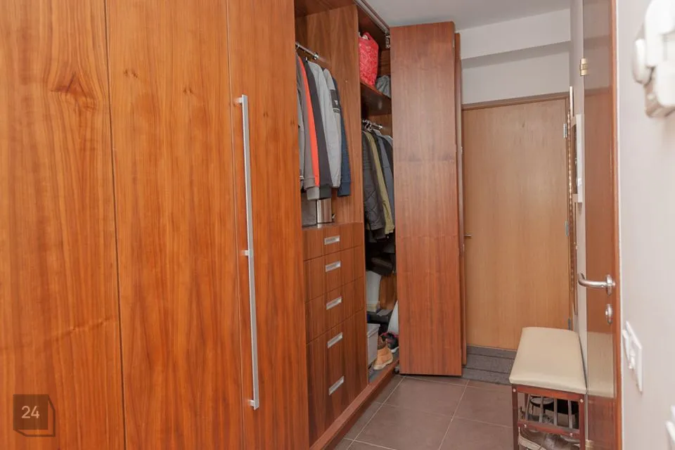 В спальне имеется большой и вместительный шкаф с раздвежными дверьми.