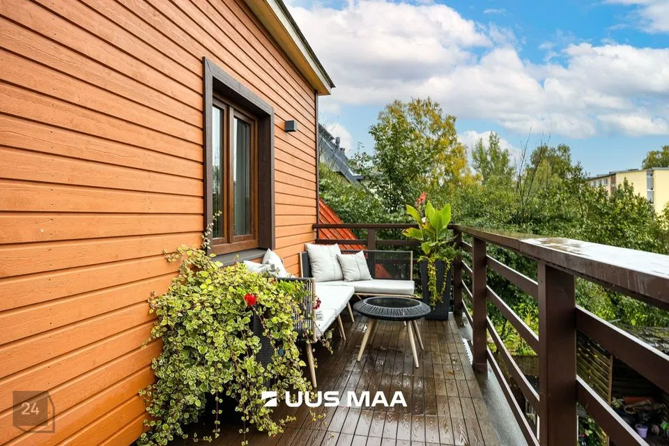 Elutoast pääseb päikselisele rõdule (16, 34 m2), kuhu paistab terve päeva päike ja mis on vaatega aia rohelusele.