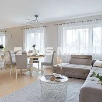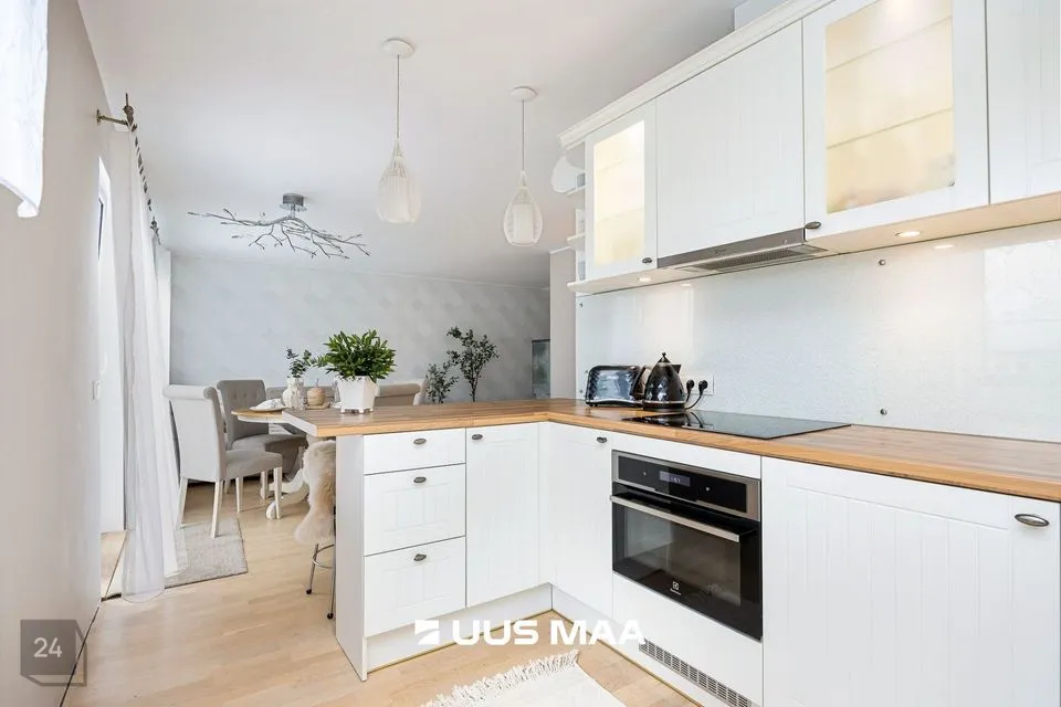 Avatud köök-elutuba on tõeline tantsusaal (43,55 m2). Köögis on kvaliteetne Arens´i köögimööbel ja integreeritud köögitehnika (induktsioonpliit, ahi, nõudepesumasin, külmkapp).