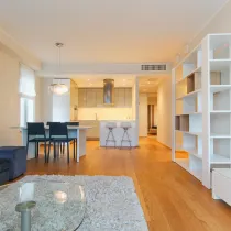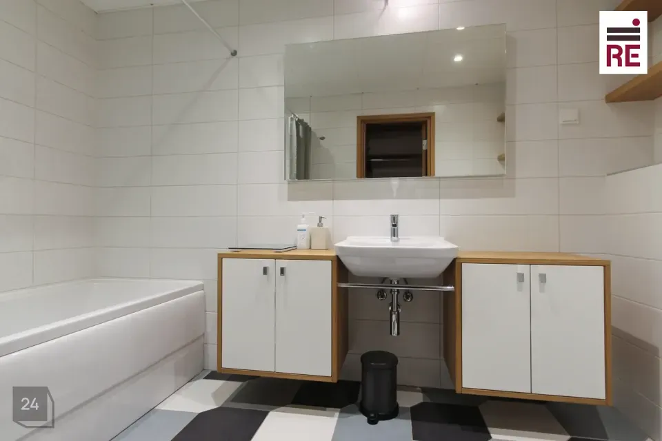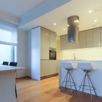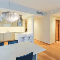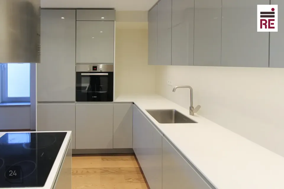 Korteris on olemas kõik vajalik kohtmööbel - köök, garderoobid, kardinad. Köögimööbel on valmistatud eritellimusena ARS-i poolt ning on varustatud Bosch integreeritud tehnikaga (ahi, nõudepesumasin). Köögi saarel on pliit ja õhupuhasti.