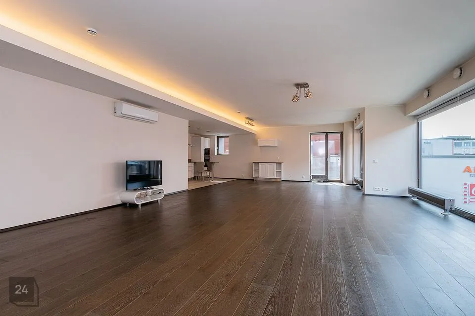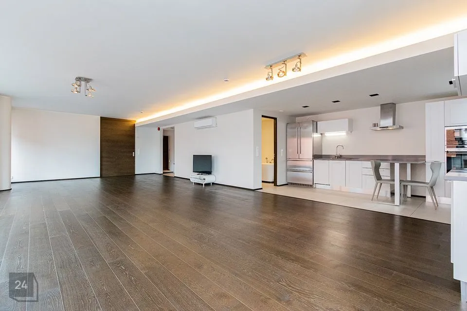 Korter koosneb elutoast, mis on ühendatud köögiga ja mis on jagatud funktsionaalseteks piirkondadeks – köögi, elu ja söögi piirkond, 3-st magamistoast, 2-st sansõlmest, majandusblokist marmorist vannitoaga, türgi saunast ja 5-st rõdust. Elutoas ja köögis on paigaldatud kliimaseade Mitsubishi, mis jahutab korterit palavatel suvepäevadel. Aknad avanevad kvartali sisepiirkonda. Kõik korteri põrandad, välja arvatud köögi, majandusruumi, sansõlme ja türgi sauna, on kaetud naturaalse tammepuust parketiga. Kõik toad korterist omavad soojendust, kogu köögitehnika on Meile ja Siemensi firmade oma. Köögis on tehnikast mahukas külmkapp, õhupuhasti, mikrolaineahi, elektripliit ahjuga.
