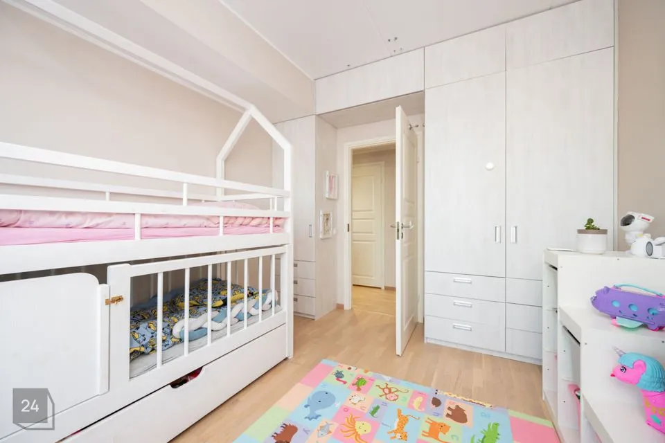 Korter on loodud peresõbralikuks, sisaldades avarat esikut peegelkapi ja kahe mugava magamistoaga. Master magamistoas on eraldi walk inn garderoob . Vannituba ja WC ja erladi kodu painipaik kujs paikneb pesumasin ning kuivati lisavad mugavust ning avatud planeeringuga elutuba ja köök on ideaalsed koosolekuteks ja külaliste vastuvõtmiseks. Suurel klaasitud rõdul saab nautida päikesetõuse ja -loojanguid,