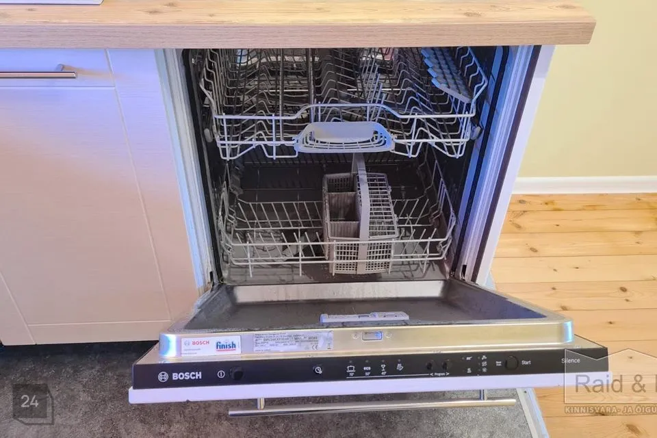 Köögimööbel on heas seisukorras ning varustatud keskmisest kvaliteetsema integreeritud tehnikaga. Muidugi ei puudu ka nõudepesumasin.