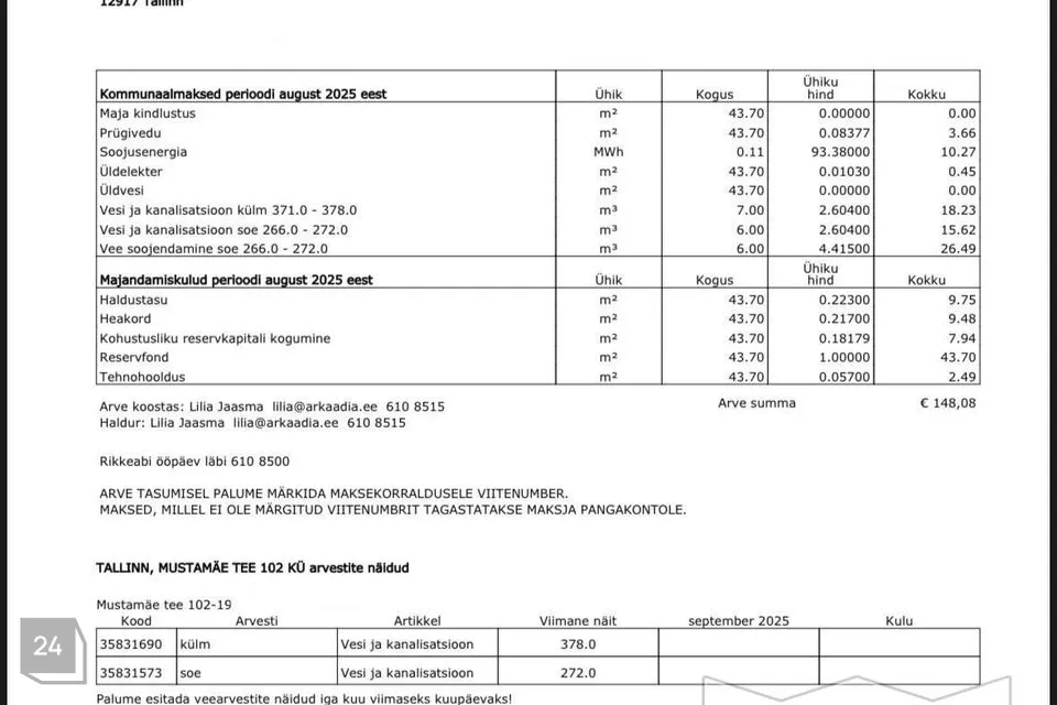 Kommunaalkulud on mõistlikud. Näited lisatud fotode lõppu.