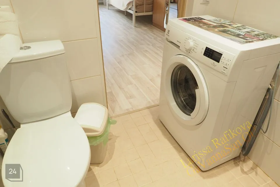 Душ, туалет, стиральная машина, койка, шкаф – все что нужно для аренды.