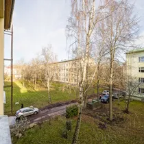 Akendest avaneb vaade rohehaljastusele- ükski aken tänavaliikluse poole suunatud ei ole, kuna maja ei asu suure sõidutee ääres.