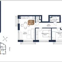 + elutuba 22,6 m2, magamistoad 11,1 m2 ja 10,8 m2, dušširuum 3,2 m2 ja väike abiruum 1,4 m2;